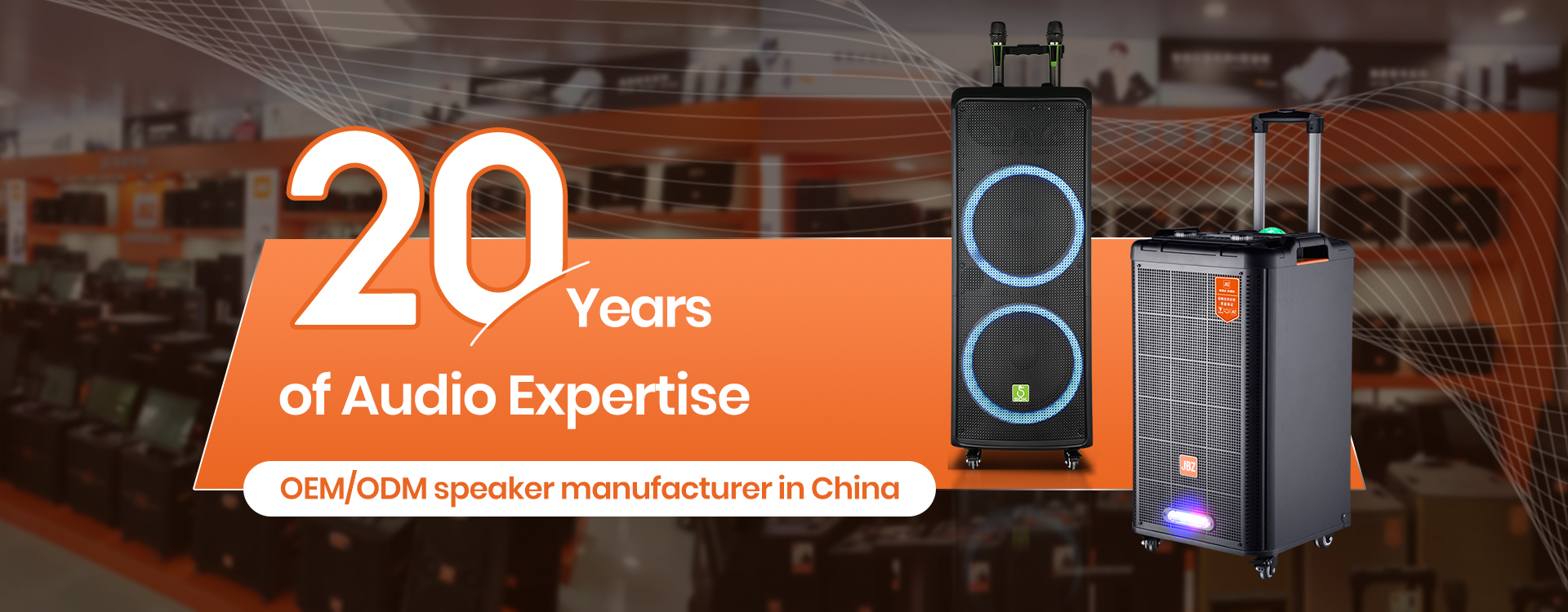 With years of expertise in the acoustic field, we are committed to providing global customers with high-quality, high-performance audio solutions, including Bluetooth outdoor speakers, video speakers, and party audio systems.